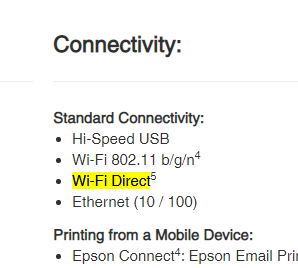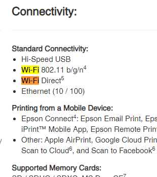 Outside of Wi-Fi, there are a number of ways a device can connect to a printer. If the printer is not wireless, you’ll have to connect to your printer via USB cable. Some people prefer using the wired connection because it allows for faster data transfers and quicker printing. Depending on the speed of your Wi-Fi and how strong the signal is, it can take time for the document to send from computer to printer over the network. Using a wired connection eliminates this issue. Other connections you may have are: Ethernet for wired connection to your network; Airprint or Google Cloud Print for quick direct printing over the cloud/internet; USB hard drive or memory card to print directly from storage devices; or PictBridge to print directly from cameras.