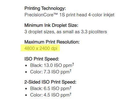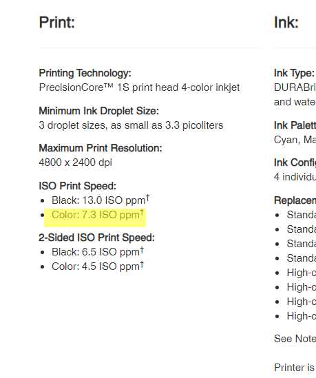 It supports automatic two-sided printing, borderless printing and prints at the speed of 13.0 ppm (7.3 ppm in color). It's recommended montly page volume is 800 and maximum allowed page volume is 3000.