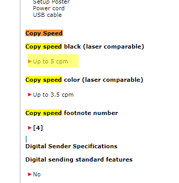 It prints at the speed of 8.5 ppm (6.0 ppm in color). It's recommended montly page volume is 175 and maximum allowed page volume is 1000.