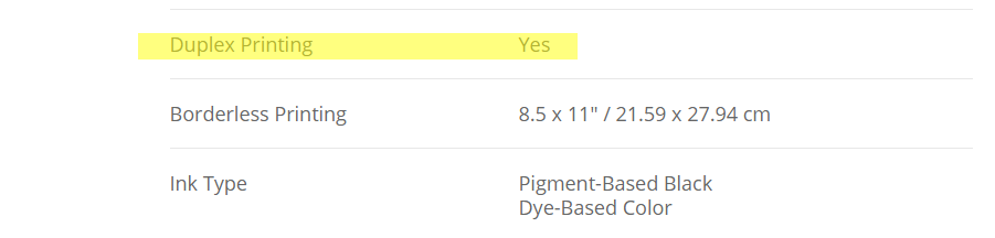 - Two-Sided Printing not supported