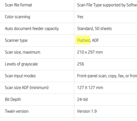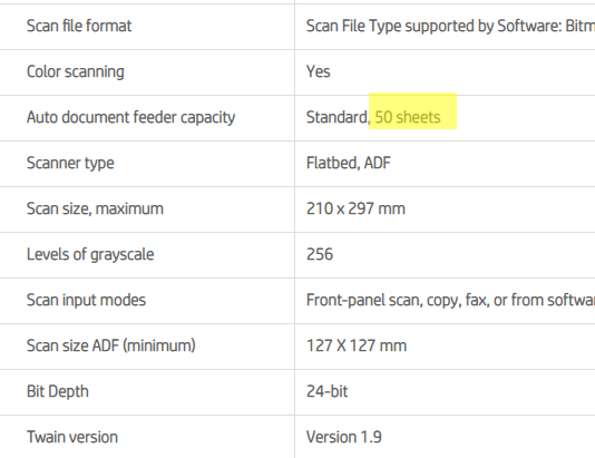 It can scan a stack of up to 50 papers (using Automatic Document Feeder), as well as custom-sized documents (such as passports) with its flatbed scanner. It has a couple of extra perks: a built-in duplexer (2-sided scanning), sending scans to an email and converting scans to searchable PDFs.