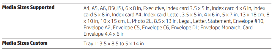 - Custom size : 3.5 x 8.5 to 5 x 14 in