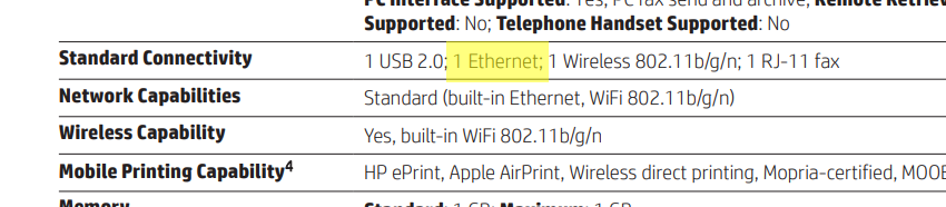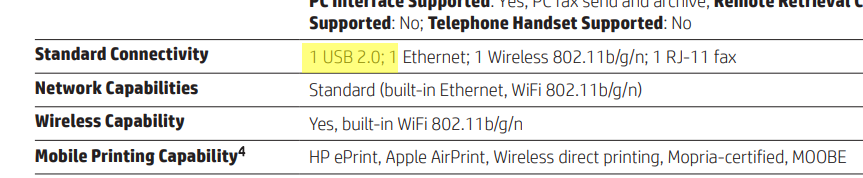 Outside of Wi-Fi, there are a number of ways a device can connect to a printer. If the printer is not wireless, you’ll have to connect to your printer via USB cable. Some people prefer using the wired connection because it allows for faster data transfers and quicker printing. Depending on the speed of your Wi-Fi and how strong the signal is, it can take time for the document to send from computer to printer over the network. Using a wired connection eliminates this issue. Other connections you may have are: Ethernet for wired connection to your network; Airprint or Google Cloud Print for quick direct printing over the cloud/internet; USB hard drive or memory card to print directly from storage devices; or PictBridge to print directly from cameras.