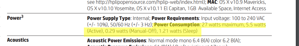 - 0.29 watts (Manual-Off)