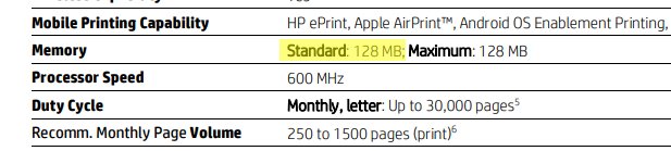 It supports automatic two-sided printing, borderless printing and prints at the speed of 22.0 ppm (18.0 ppm in color). It's recommended montly page volume is 875 and maximum allowed page volume is 30000.